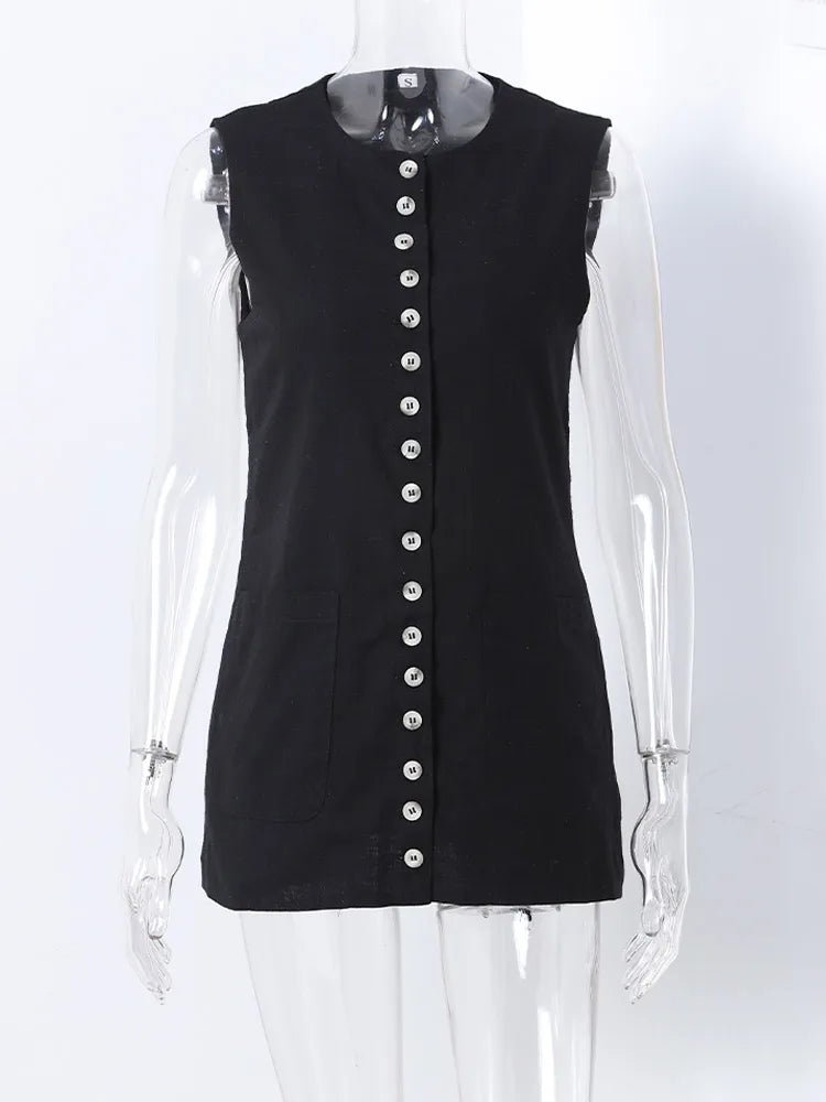 Design: A sleek and sophisticated single-breasted slim vest featuring an O-neck collar and a button closure. Designed to add an elegant touch to any office or formal outfit, this vest combines a polished look with comfort.