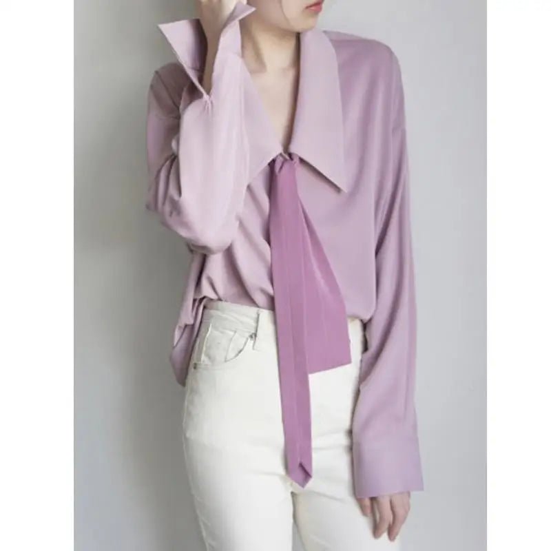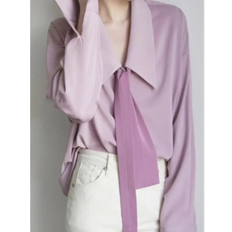 Long Sleeves Solid Necktie Shirt