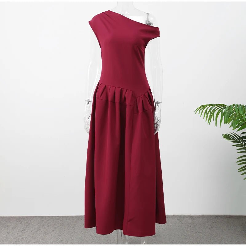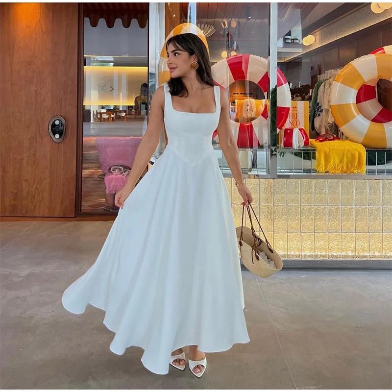 Design: Sophisticated A-line silhouette with a pleated design, square neckline, and sleeveless cut for a timeless look.