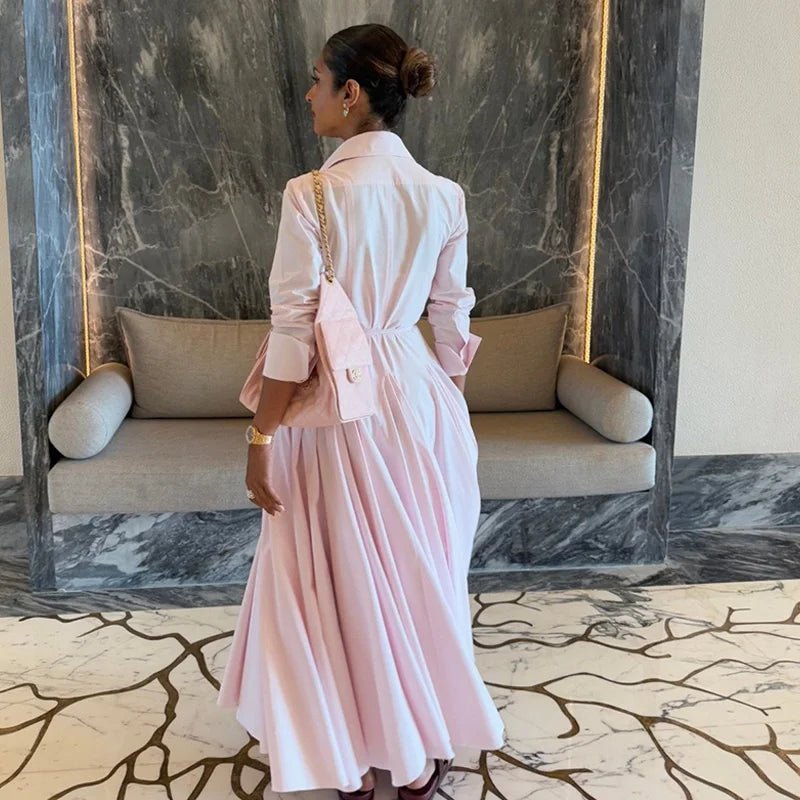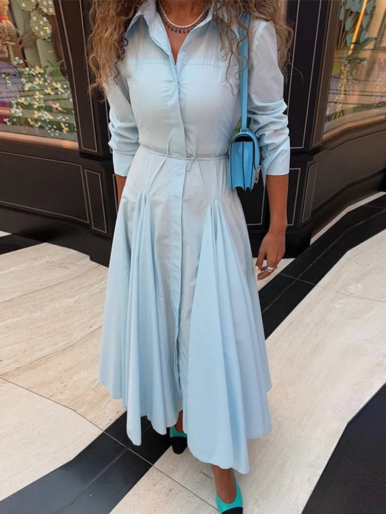 Design: A flowing pleated long dress with a flattering V‑neckline, playful lace‑up waist detail, and a chic asymmetrical hem. Perfect for adding elegance to both casual outings and special occasions.