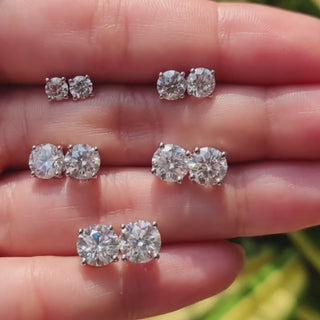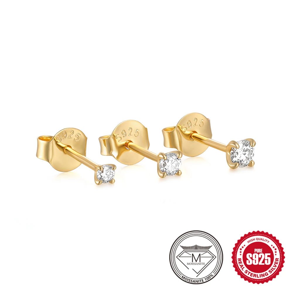 Design: Elegant geometric stud earrings crafted with brilliant-cut moissanite stones set in high-polish 925 sterling silver. Timeless and sparkling, ideal for both daily wear and special occasions.