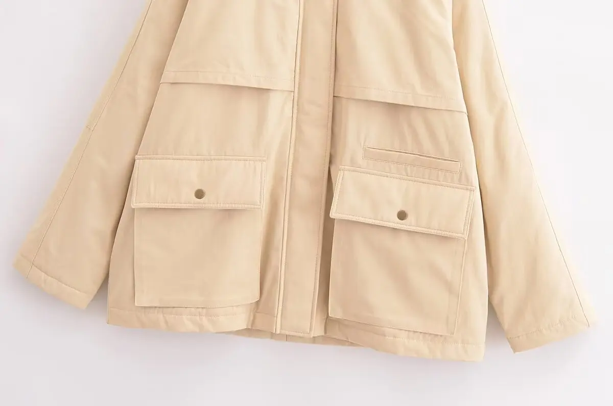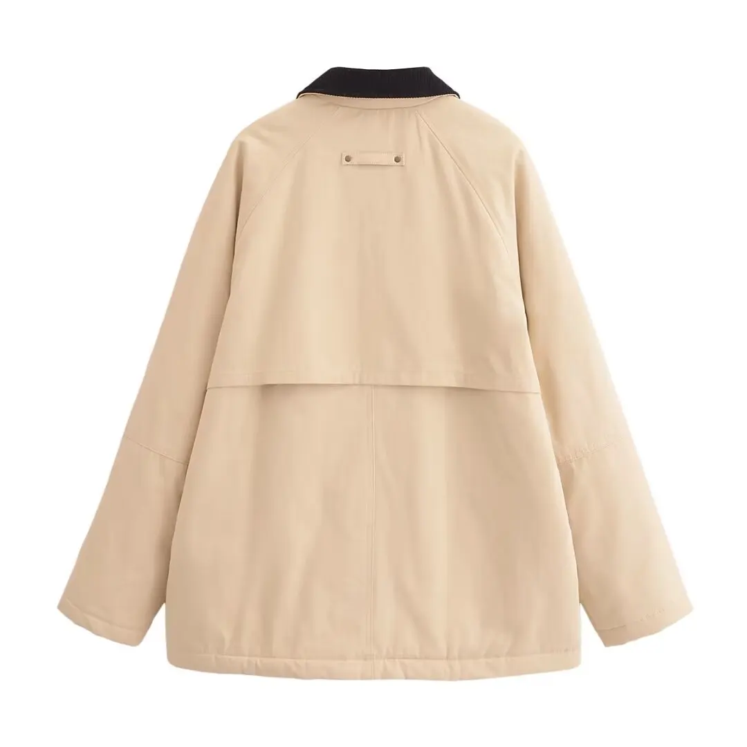 Design: A versatile long-sleeve casual jacket with a full-zip closure and a classic turn-down collar. The solid pattern and wide-waisted design create a relaxed yet stylish look, perfect for autumn and winter.