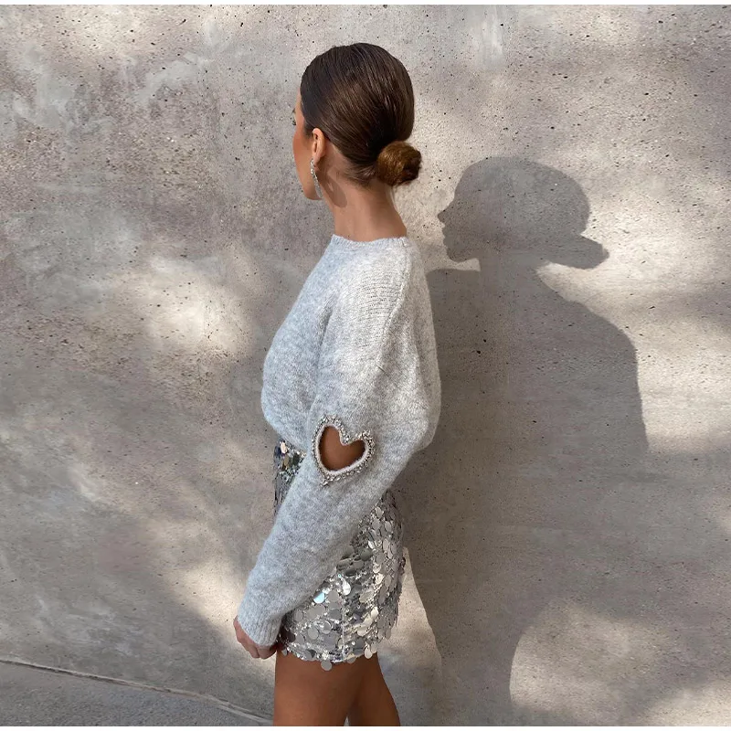 Vintage Love Hollow Out Beads Sweaters Knitted Pullover