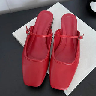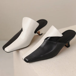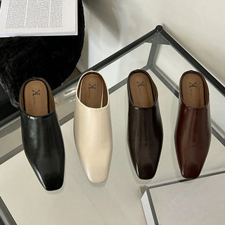 Flat Leather Split Toe Fashion Mules - Diva Melody