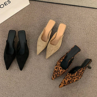 Pointed Toe Leopard Slip - On Mules - Diva Melody