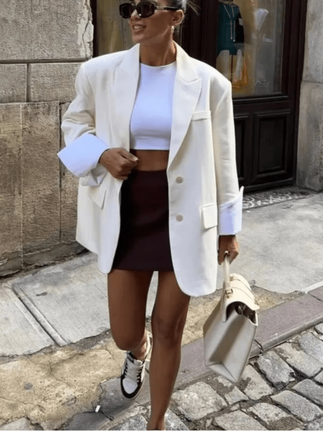 Design: A high-street single-breasted blazer featuring a structured silhouette, full-length regular sleeves, and functional pockets for a sleek yet practical touch.