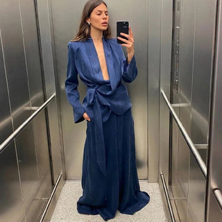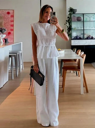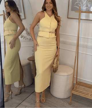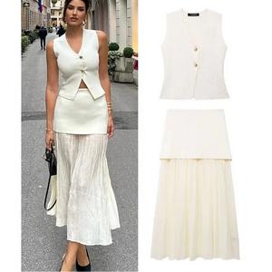 Summer V‑Neck Puff Sleeve A‑Line Skirt Set