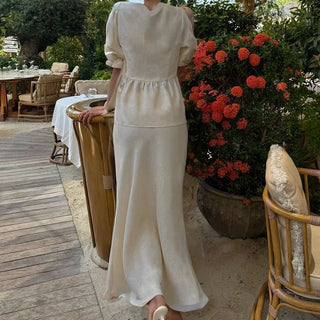 Puffy Sleeve Shirt & Bubble Skirt Set
