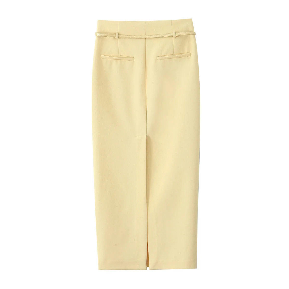 Fashion Yellow V-Neck Belted Skirt Set