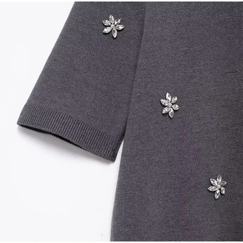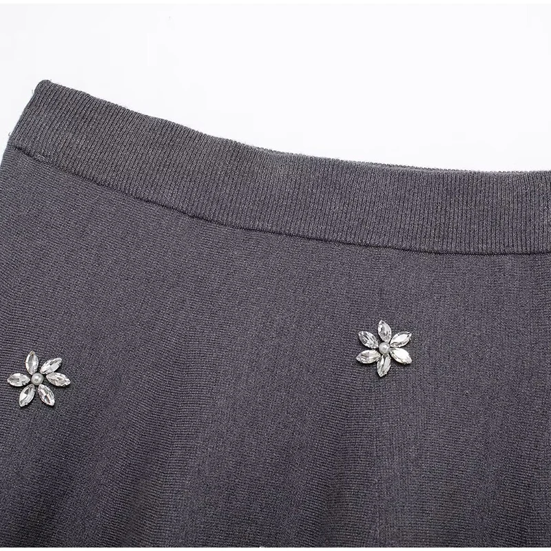 Design: A casual yet chic knitted short-sleeve top and mini skirt set featuring a slim-fit silhouette. The top has an O-neckline and a pullover design, while the A-line skirt offers a flattering shape with an elastic waistband for comfort. Subtle 3D decorative details add a touch of uniqueness.