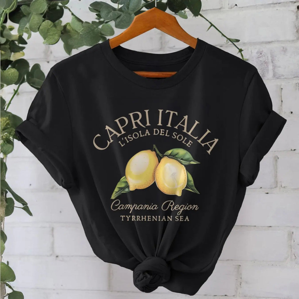 Design: A playful casual tee featuring a vibrant lemon letter print, classic silhouette, and regular-length cut for everyday ease.