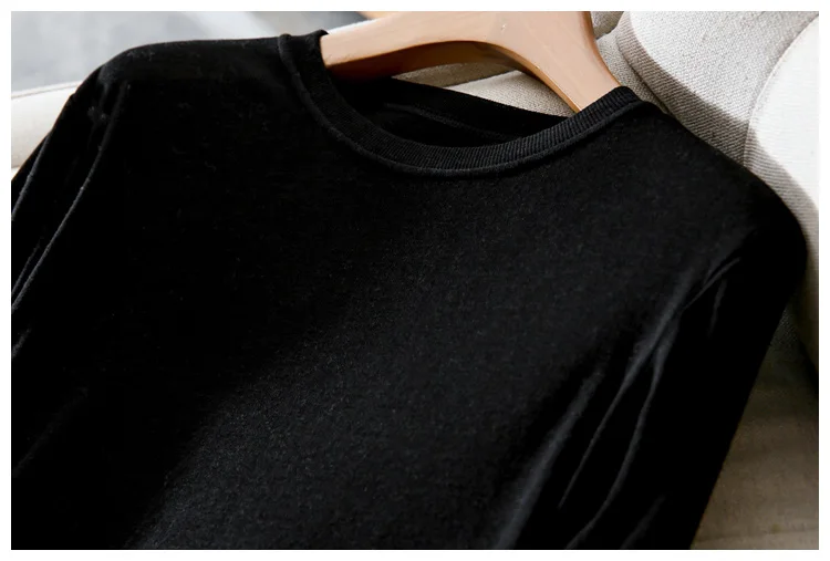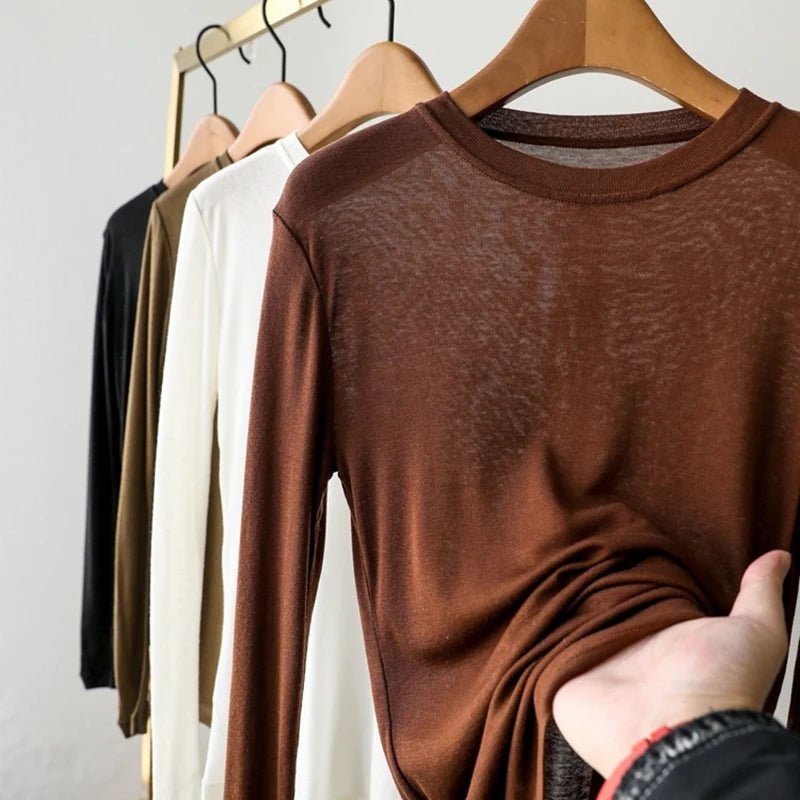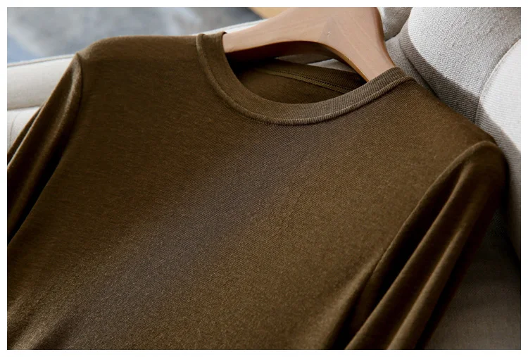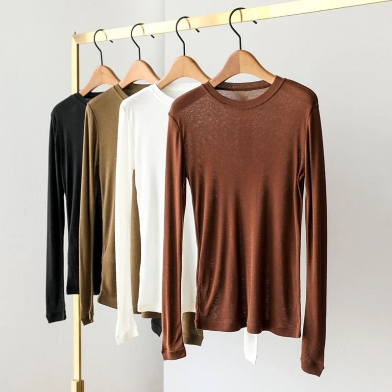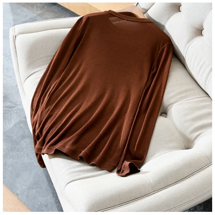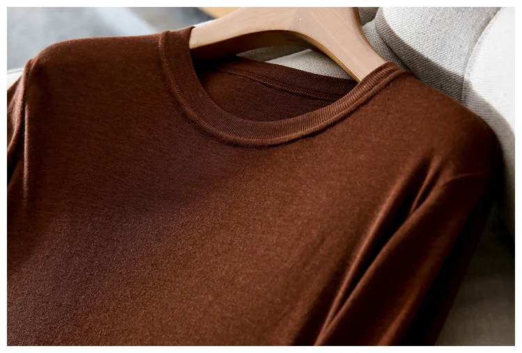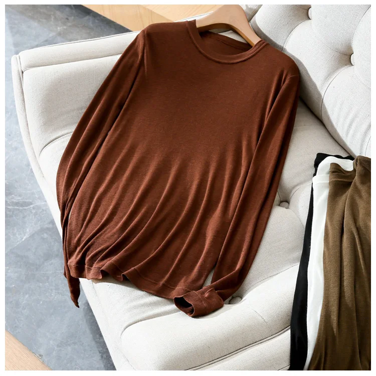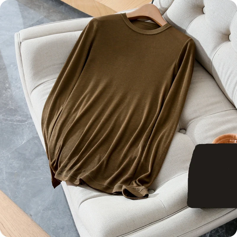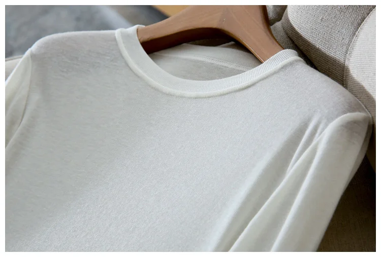 Thin O-Neck Solid Wool Long Sleeve T Shirt