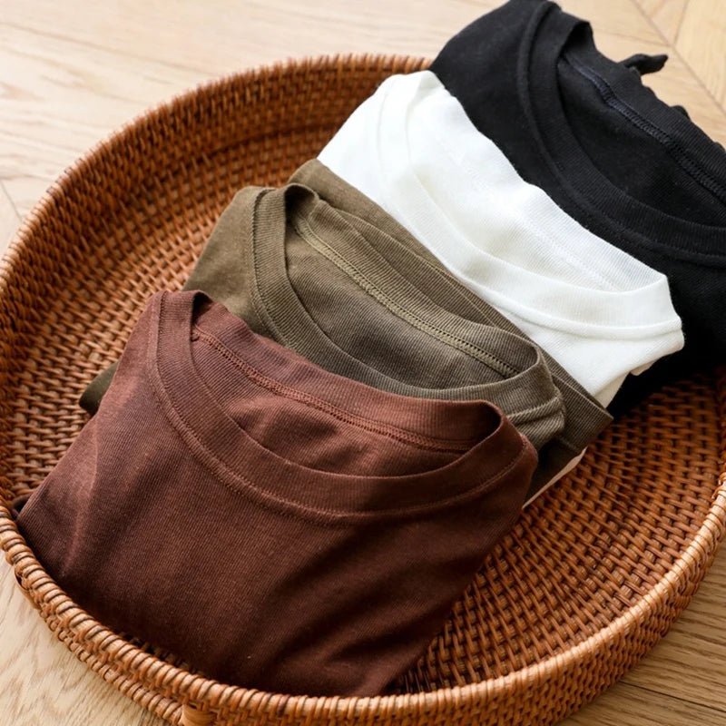 Design: Classic long-sleeve T-shirt with a clean O-neckline and a solid color finish, offering a timeless and versatile casual look.