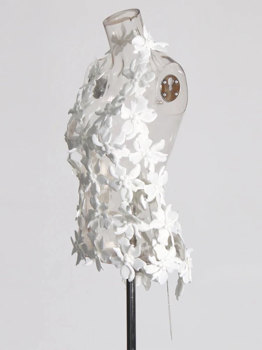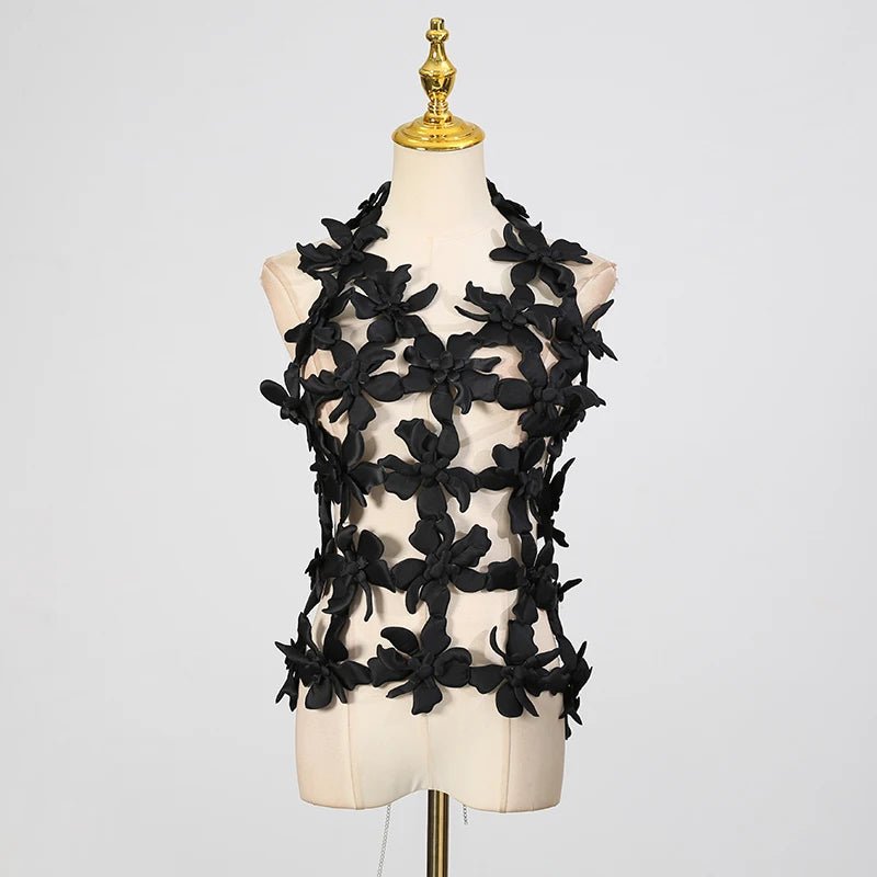 Design: A chic summer top featuring delicate 3D flower appliques with a woven texture. Lightweight and breathable, perfect for warm-weather style.