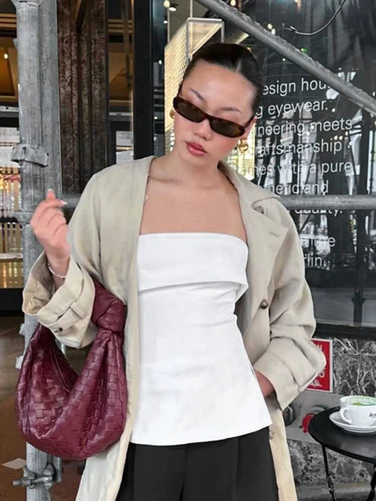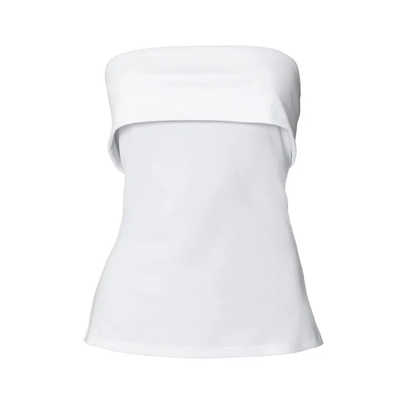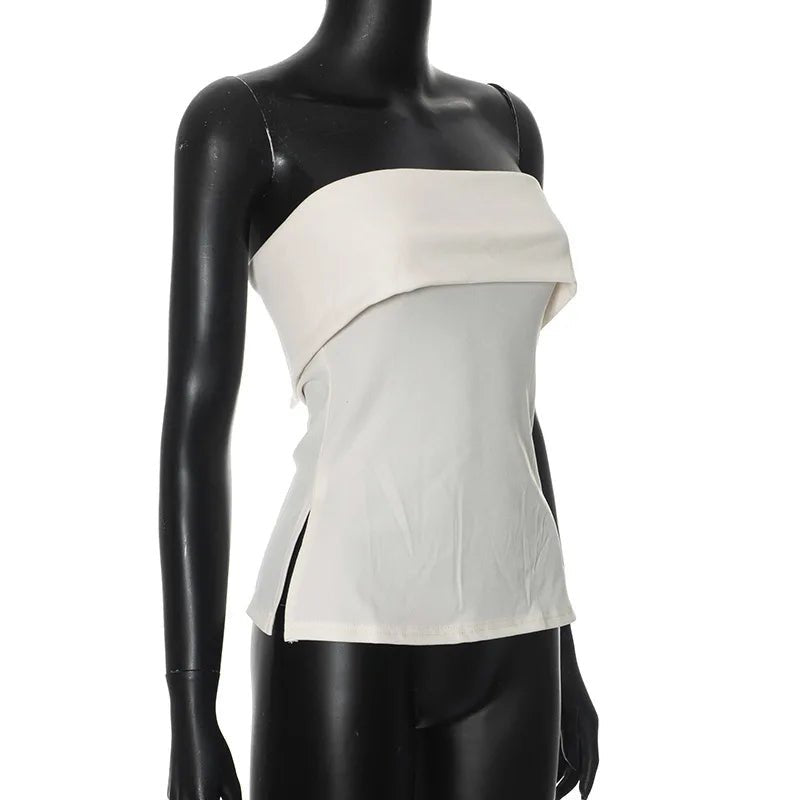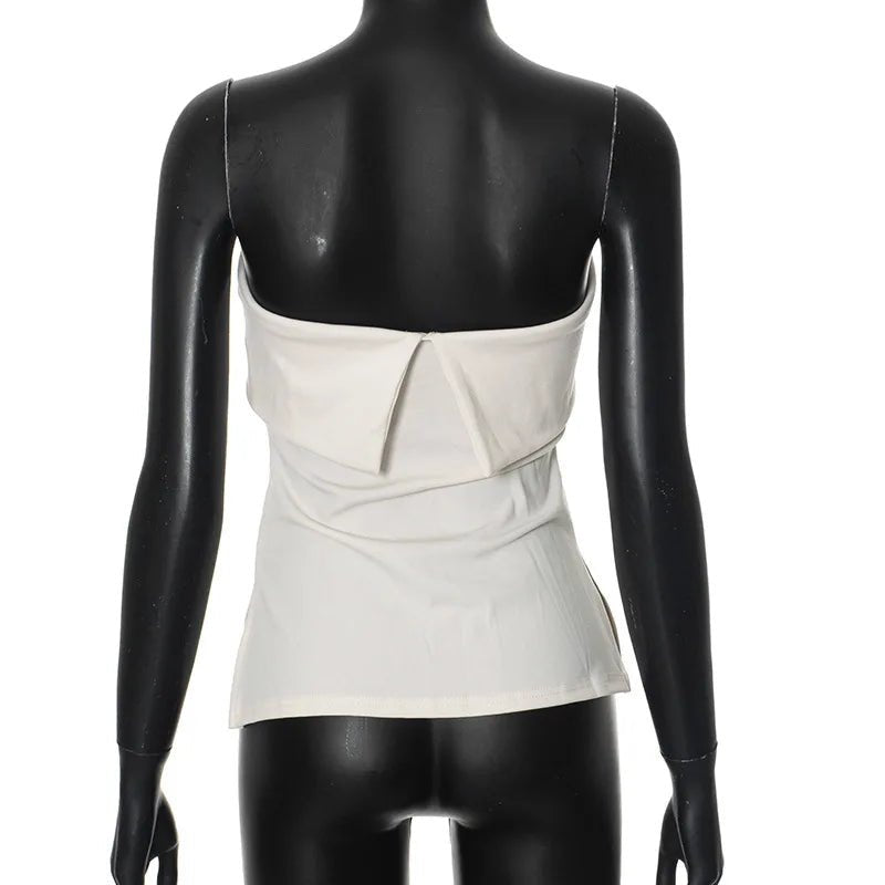 Design: Minimalist strapless tube top featuring ruched detailing and a clean, solid color style with a soft knitted finish.