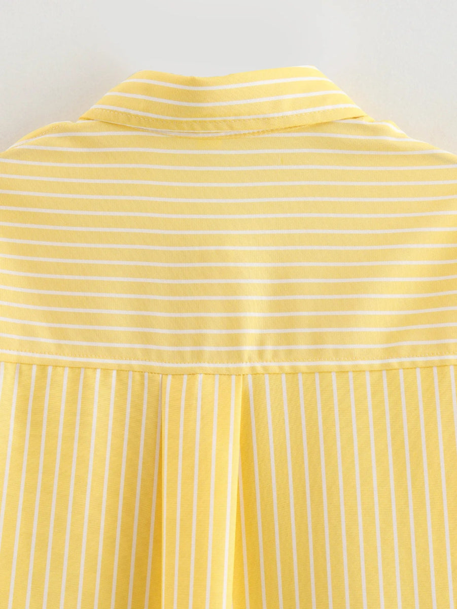 Design: A classic single-breasted shirt with bold vertical stripes, a relaxed silhouette, and long sleeves for effortless high-street style. Perfect for layering or wearing on its own.