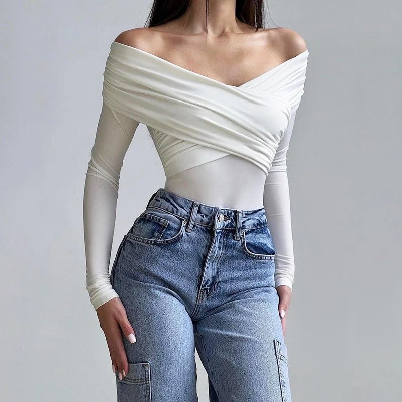 V-Neck Off-Shoulder Slim Fit Bodysuit