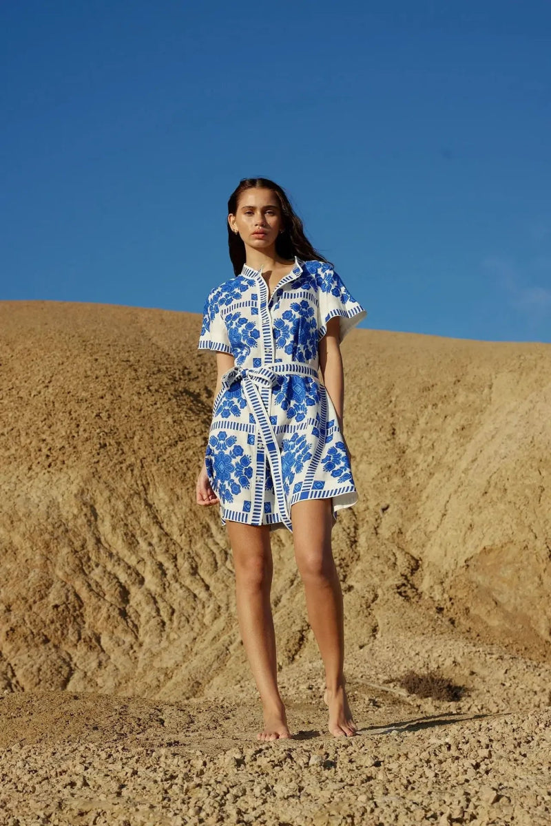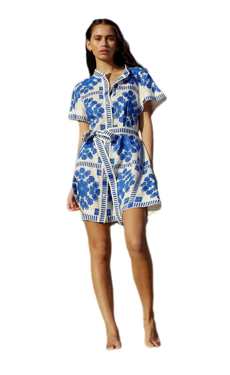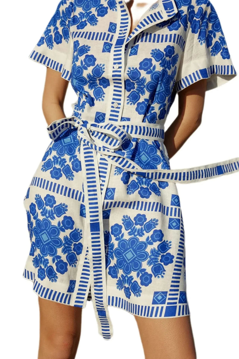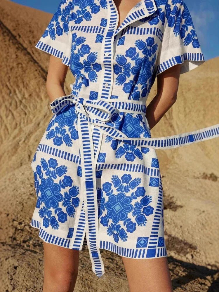 Design: A stylish printed sheath dress with an O-neckline, short sleeves, and a single-breasted closure. Sashes at the waist enhance the beachy vibe, making it perfect for summer vacations.