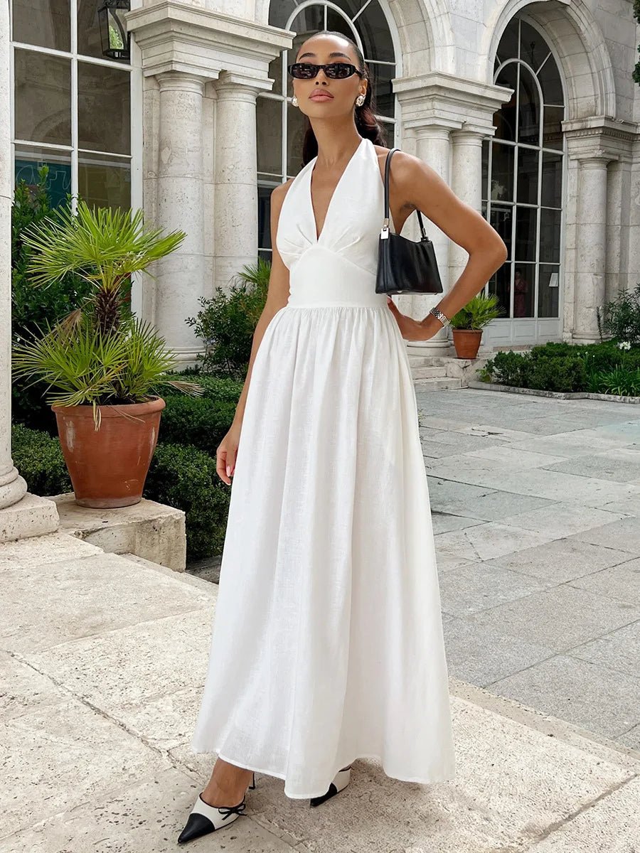 Design: A sleek ankle-length V-neck dress with a zipper closure, featuring a waist-cinched silhouette and a flattering A-line shape, perfect for an office lady look.