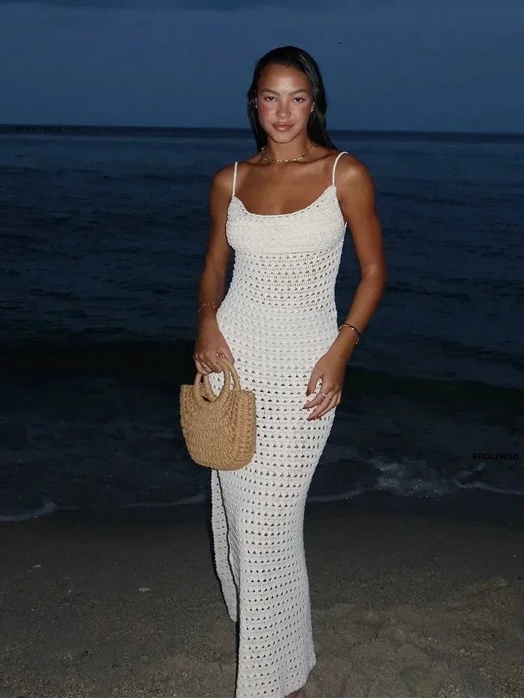 Knit Cut Out Spaghetti Strap Beach Cover-Up