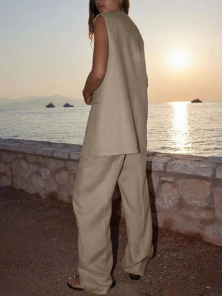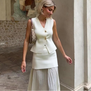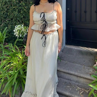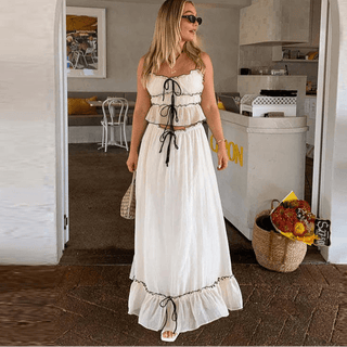 Summer V‑Neck Puff Sleeve A‑Line Skirt Set
