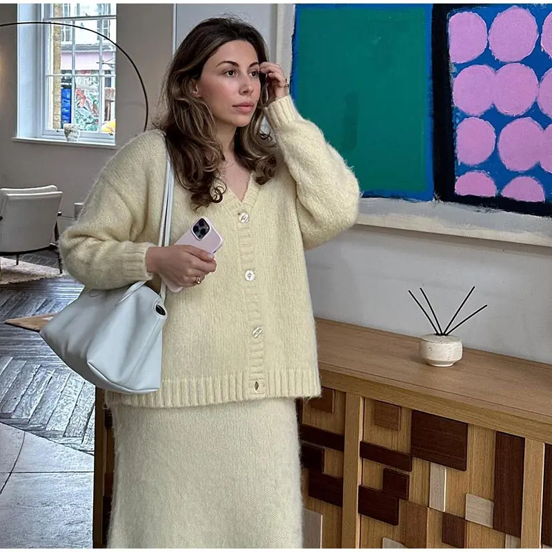 Conjuntos de cárdigan de punto de botonadura sencilla