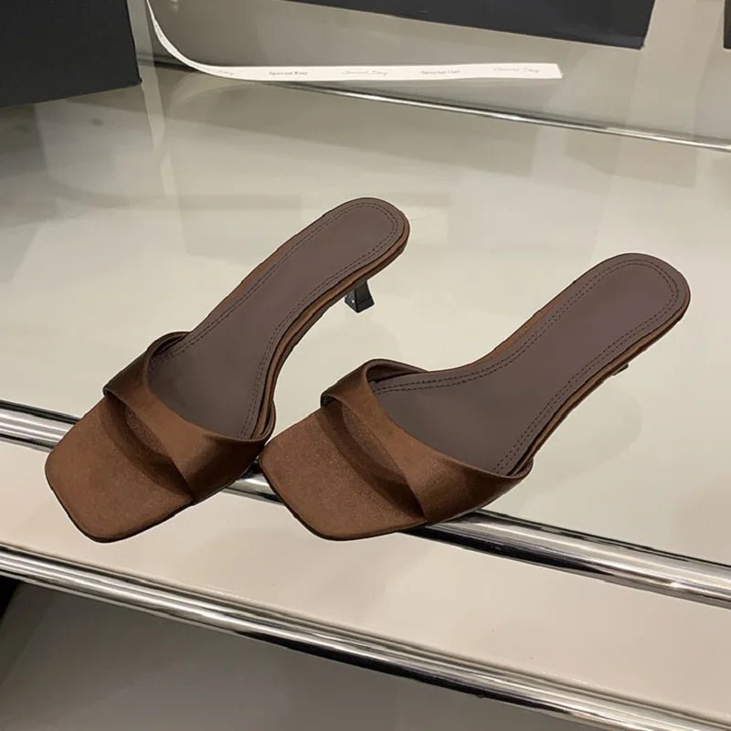 Elegant Silk Slip-On Slides Low Thin Heel Sandals