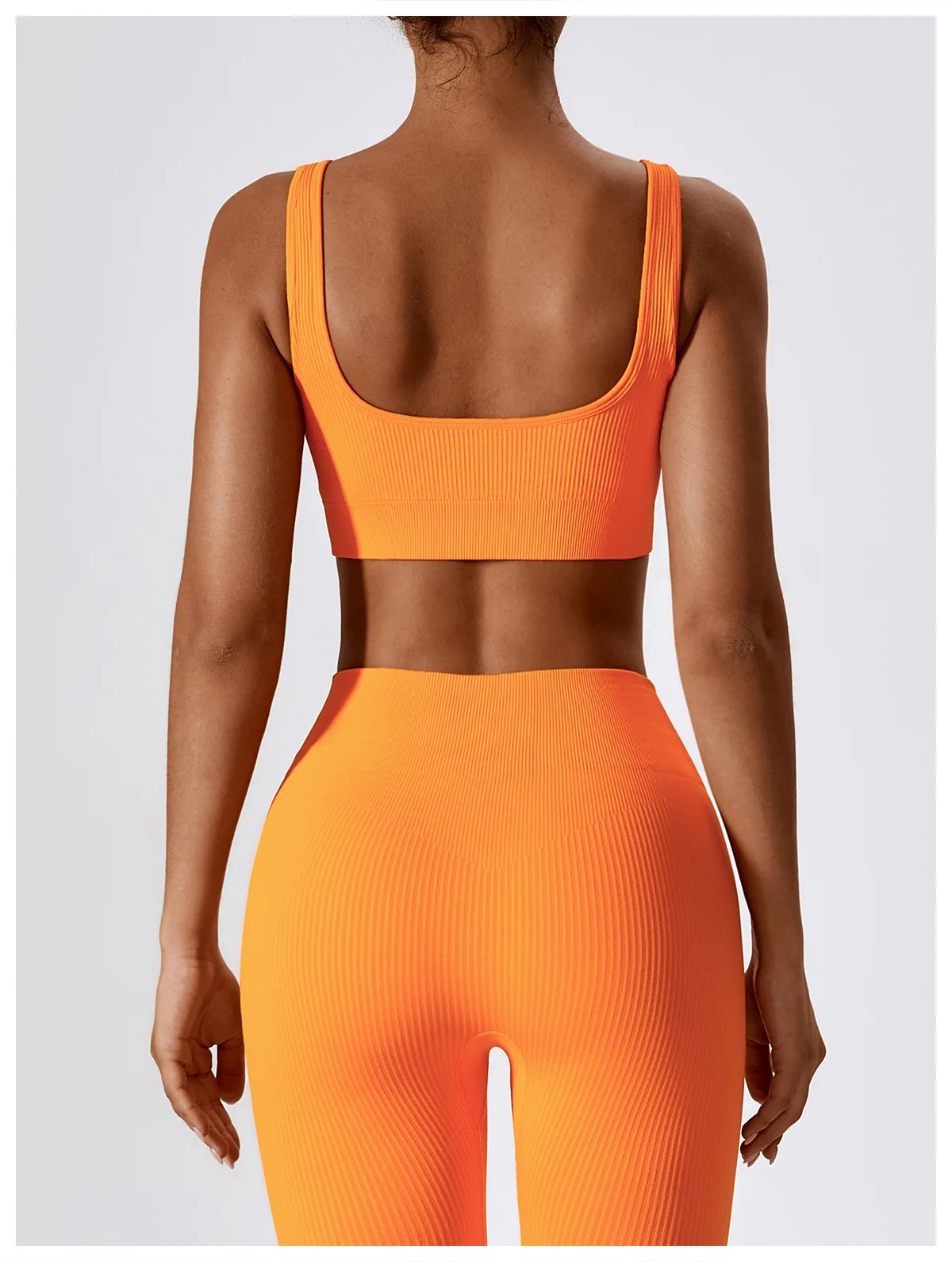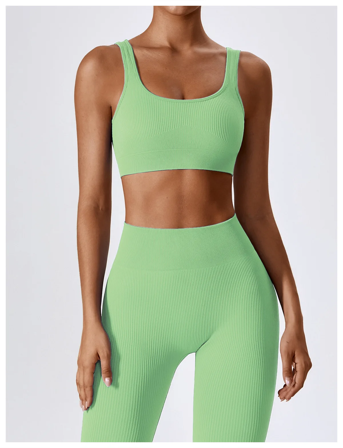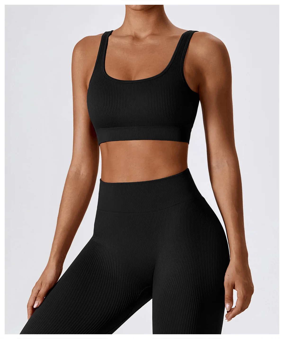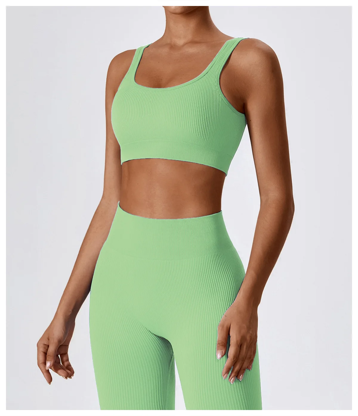 Sujetador deportivo sin costuras para yoga, gimnasio, fitness, correr, entrenamiento, top corto de punto acanalado