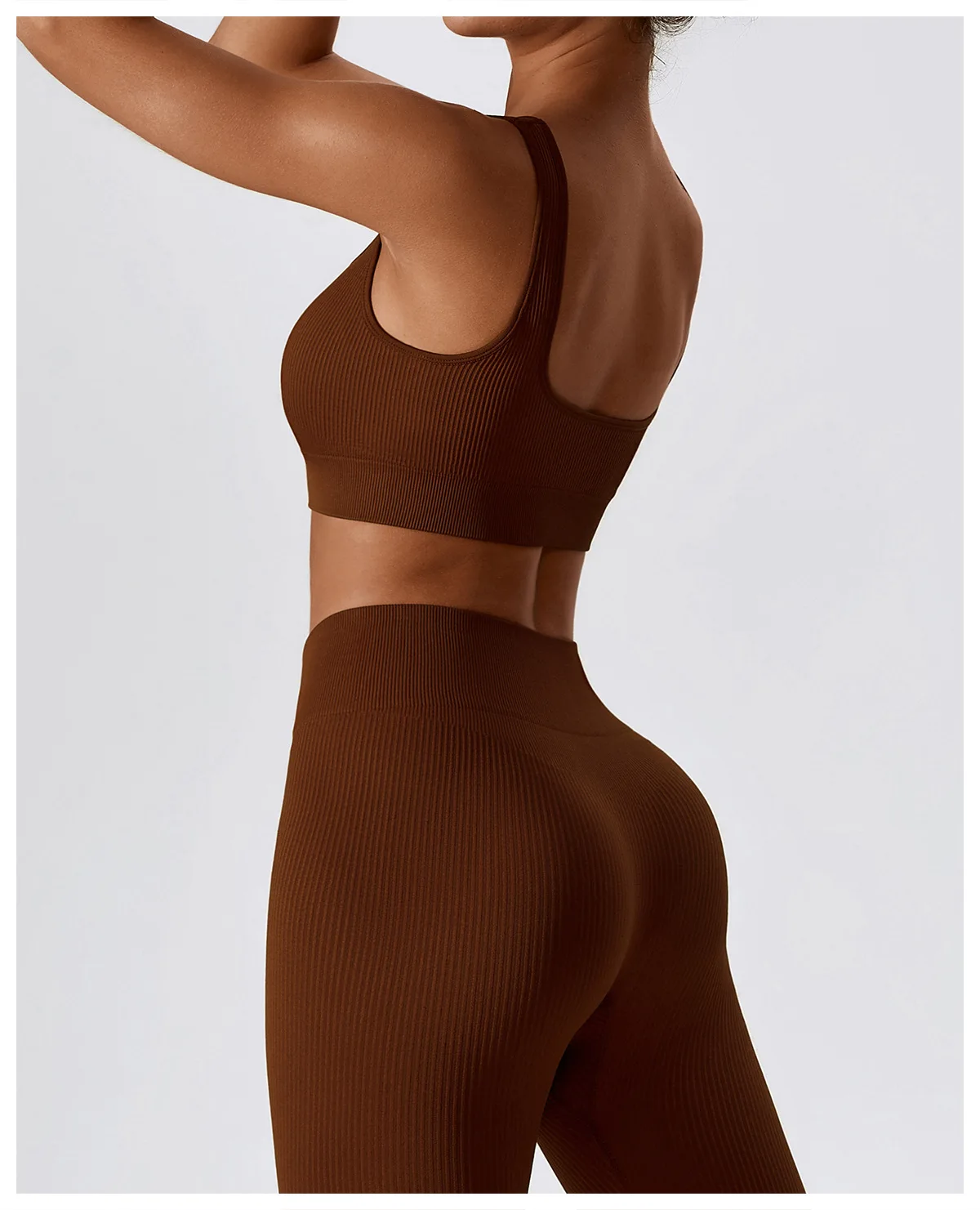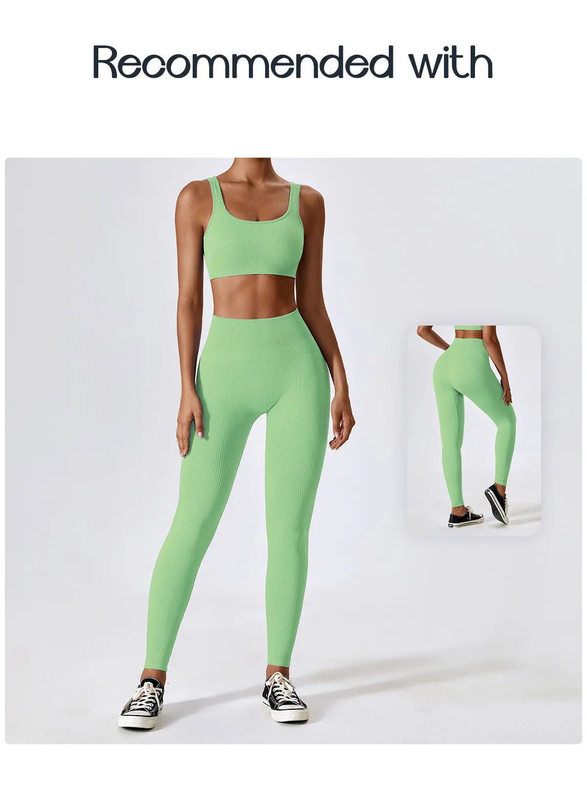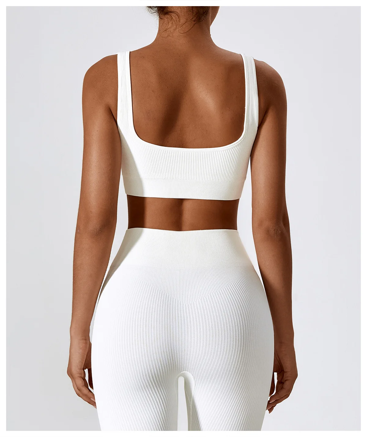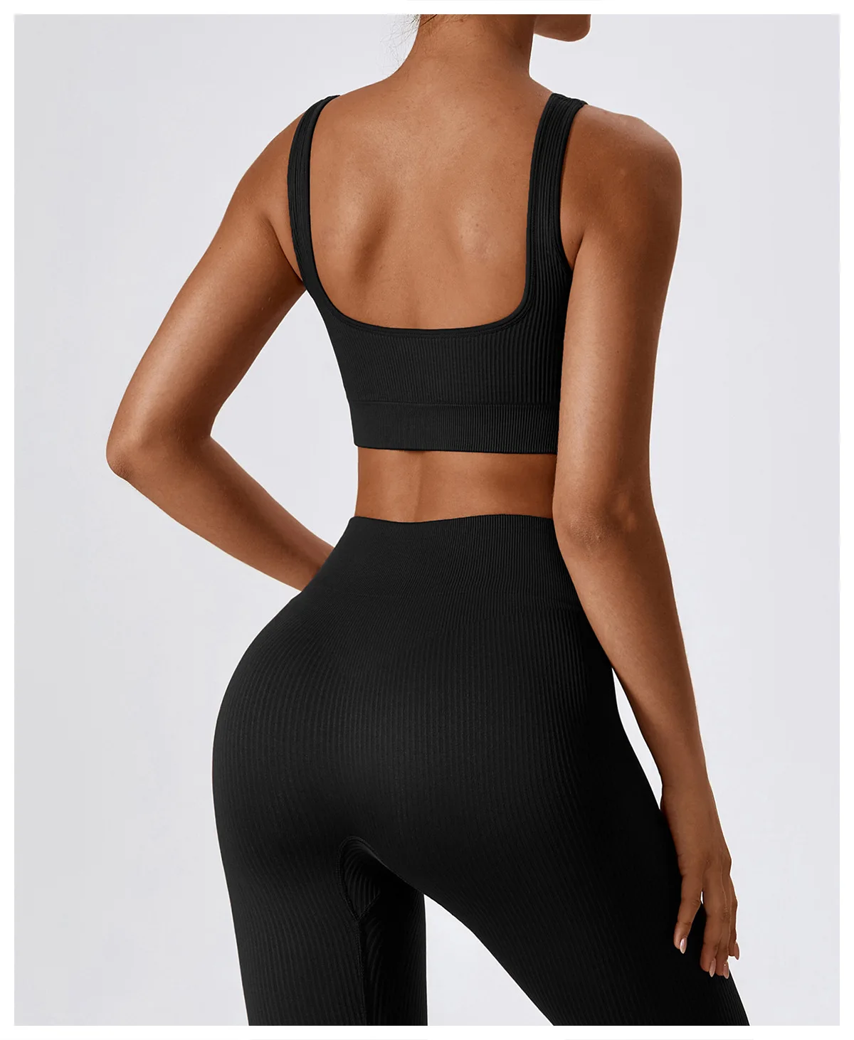 Sujetador deportivo sin costuras para yoga, gimnasio, fitness, correr, entrenamiento, top corto de punto acanalado