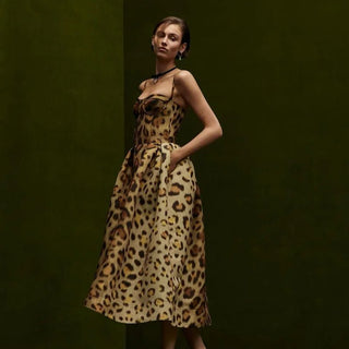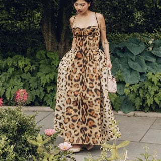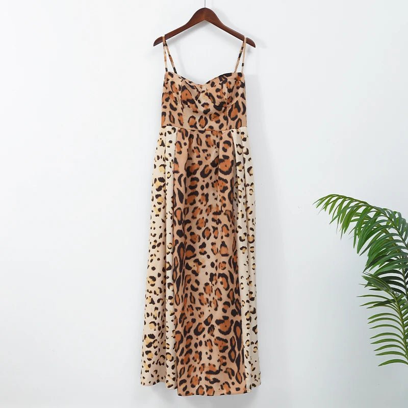 Haz una declaración audaz con el vestido largo ajustado sin mangas con cuello halter y estampado de leopardo , la combinación perfecta de encanto vintage y elegancia moderna . Diseñado para mujeres que aman destacarse, este vestido combina un elegante corte ajustado con un atrevido diseño sin espalda , lo que lo hace ideal para la moda callejera, la ropa de noche o las escapadas con estilo.