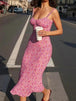 Adopte la elegancia informal con este vestido midi sin mangas con estampado floral, que presenta un favorecedor diseño de espalda descubierta y cuello cuadrado. Este vestido ajustado de corte A, confeccionado con una mezcla ligera de poliéster y elastano con un ligero estiramiento, es perfecto para salidas de primavera y verano. La cintura imperio y el cierre tipo jersey mejoran la comodidad al tiempo que muestran una silueta elegante y drapeada que llega hasta la mitad de la pantorrilla, lo que lo convierte en una opción ideal para cualquier ocasión de clima cálido.
