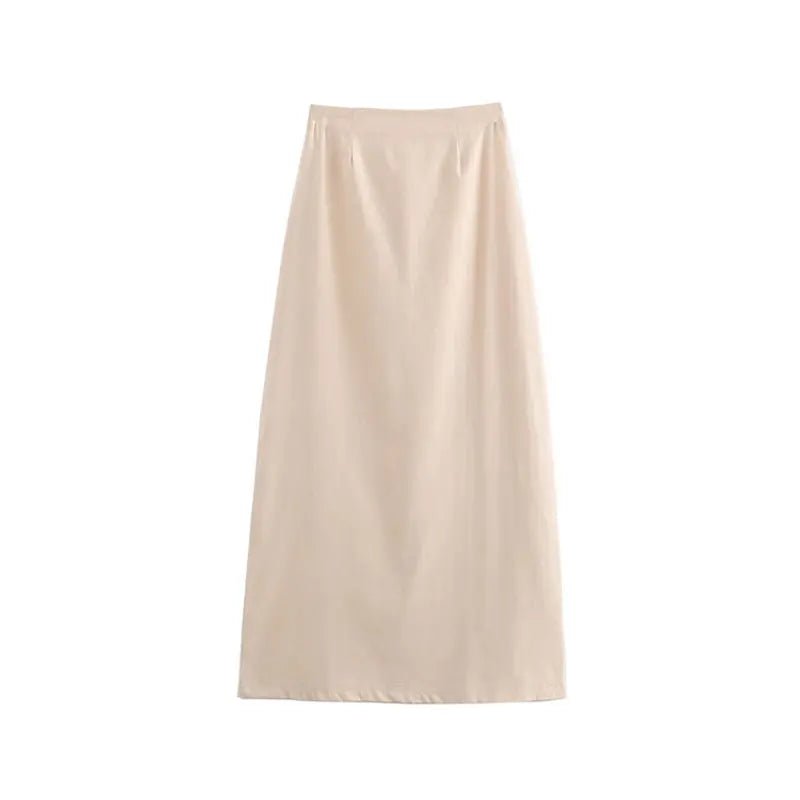 Fit Type: This slim-fit top is paired with an A-line midi skirt, designed to accentuate the waist and offer a feminine silhouette.