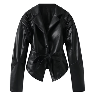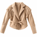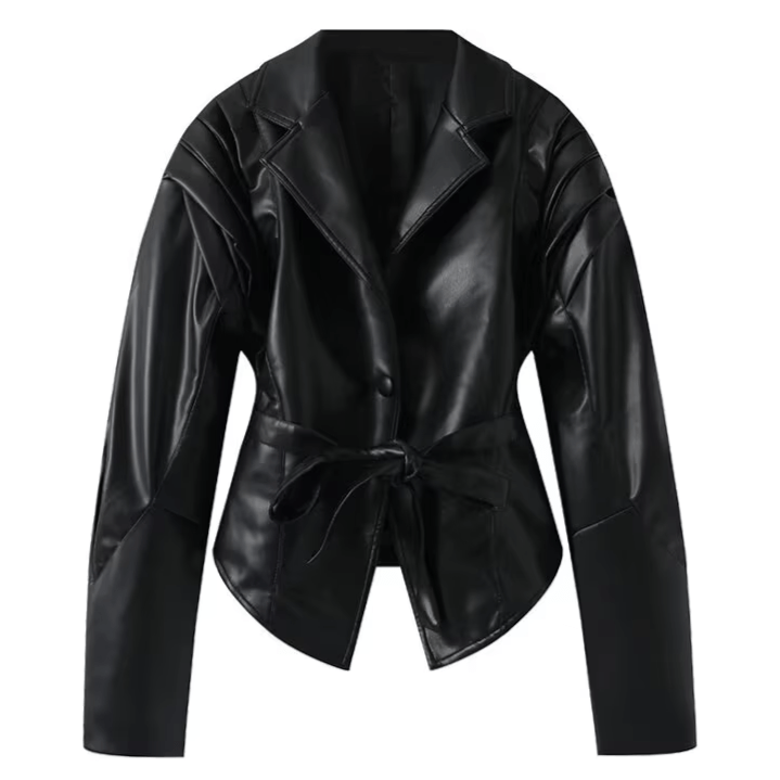 Chaquetas de cuero con mangas largas, cuello en V y cordones