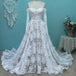 Vestido de novia de corte A y manga larga con un estilo exquisito, que presenta un escote en forma de corazón y mangas largas que dejan los hombros al descubierto. El vestido está diseñado con una cola de corte y un dobladillo hasta el suelo para un look atemporal. Confeccionado con una lujosa tela de encaje, está adornado con elegantes adornos de encaje y perlas. El diseño de la espalda con cremallera garantiza facilidad de uso, mientras que la silueta en forma de A con una cintura natural favorece a todos los tipos de cuerpo. Este lujoso vestido se puede personalizar para satisfacer tus preferencias únicas, perfecto para una boda sofisticada y elegante.