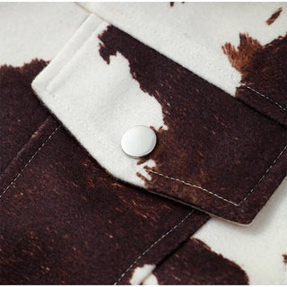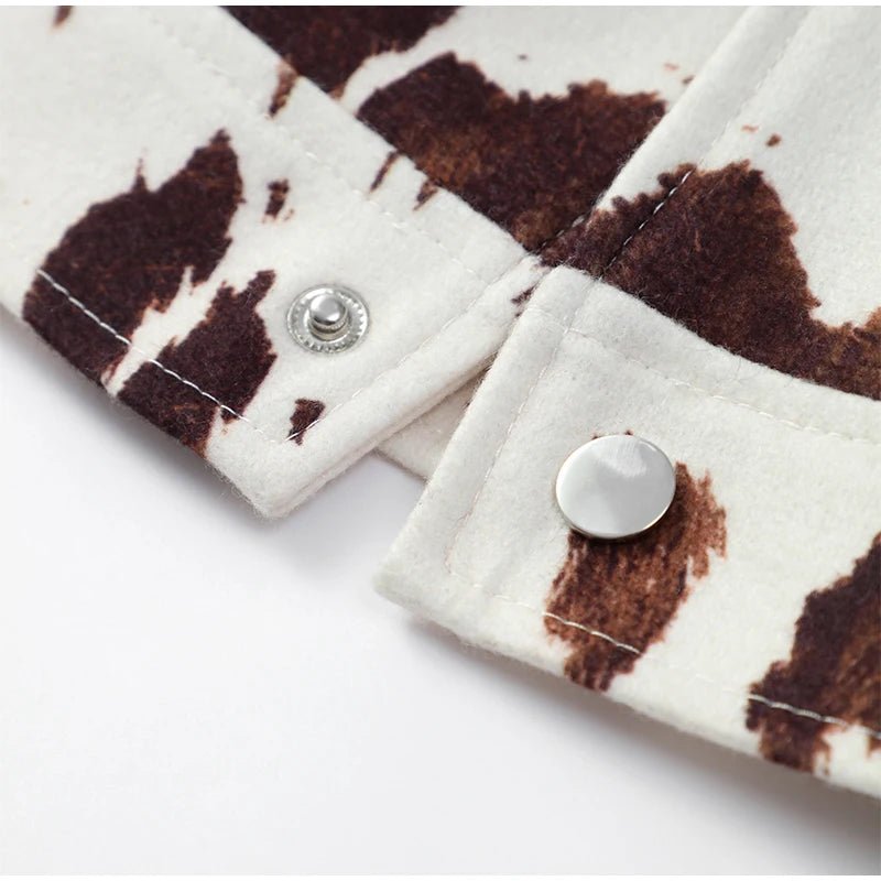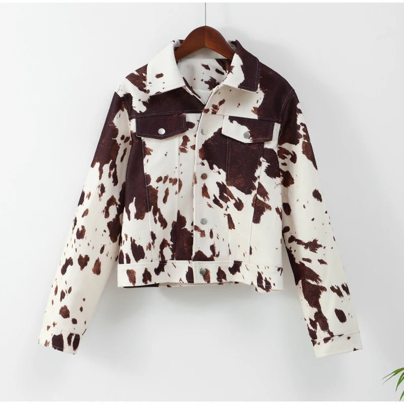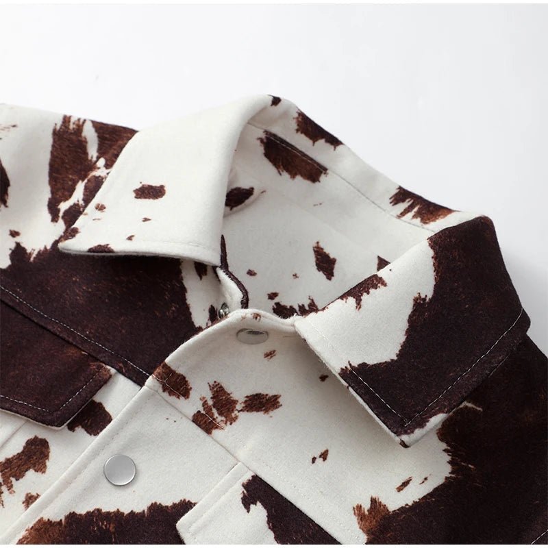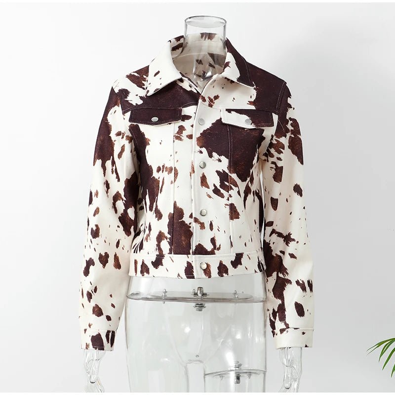 Este otoño e invierno, haz una declaración con esta moderna chaqueta de piel de cuero estampada para mujer. Con un diseño ajustado, cuello vuelto y mangas largas, esta prenda informal de abrigo irradia estilo urbano y te mantiene abrigada. Está confeccionada en poliéster con un grosor estándar y presenta un patrón estampado único y un cierre de botones de un solo pecho para un look elegante. Esta chaqueta corta, que incluye bolsillos de parche funcionales, es perfecta para mujeres de mediana edad que buscan una combinación de comodidad, practicidad y moda que marque tendencia.