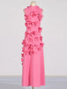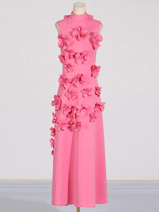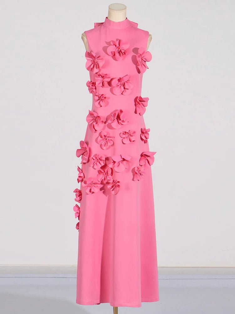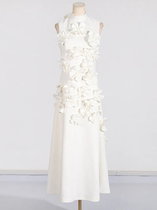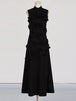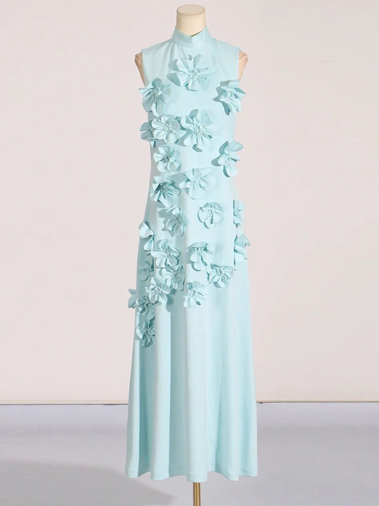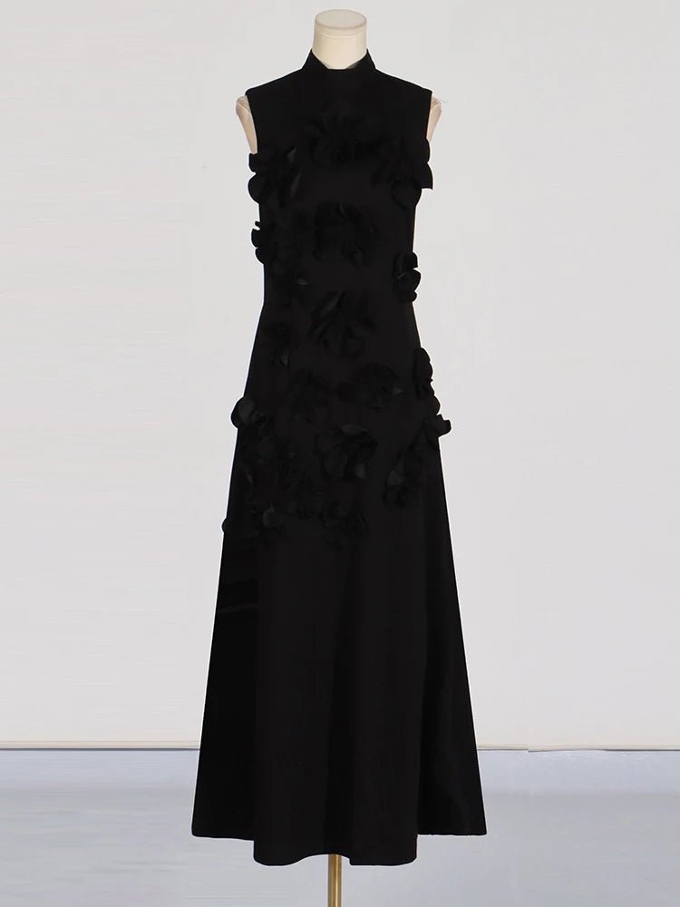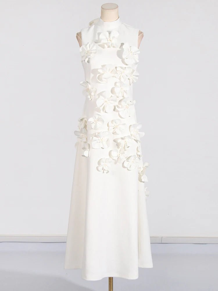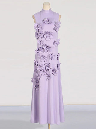 Design: A sleeveless, ankle-length A-line dress featuring a high waist and lace-up detail for a chic and flattering look. Appliques add an elegant touch to the design.