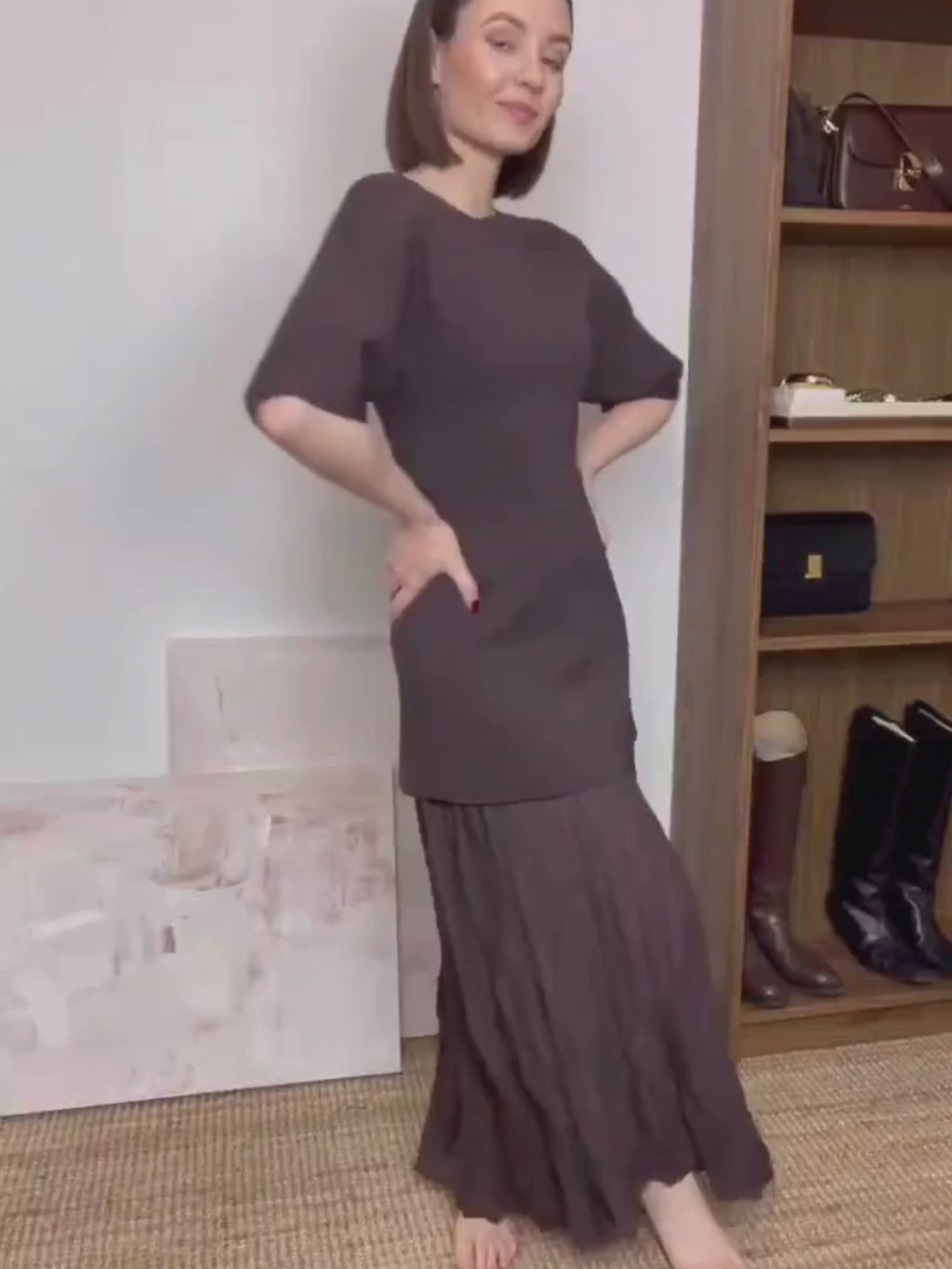 Elegant O Neck Short Sleeve Maxi Dress