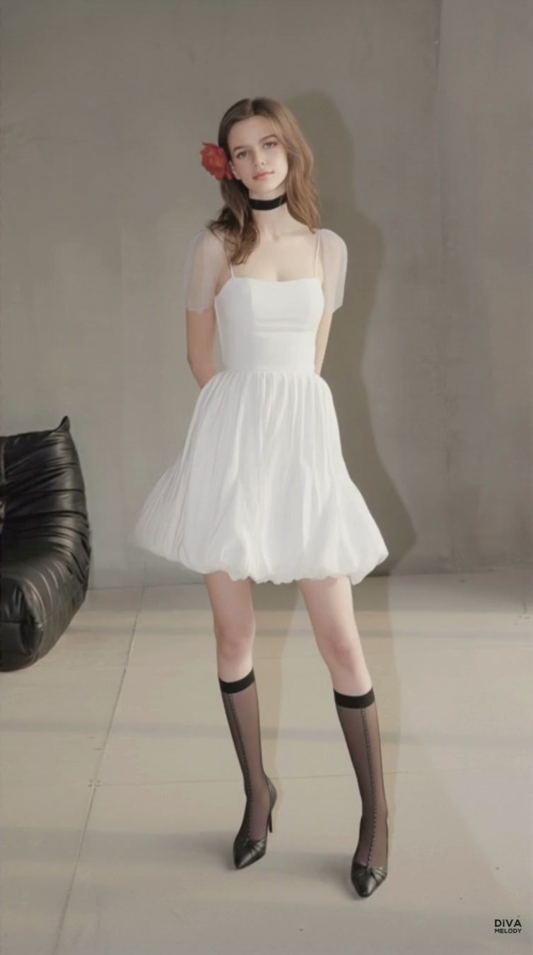 Chic et minimaliste, cette mini robe de mariée à bretelles spaghetti simple présente un décolleté en O, un design sans manches et une taille naturelle. Fabriquée en satin avec des détails de plis délicats. Personnalisable pour un ajustement parfait.