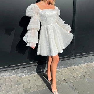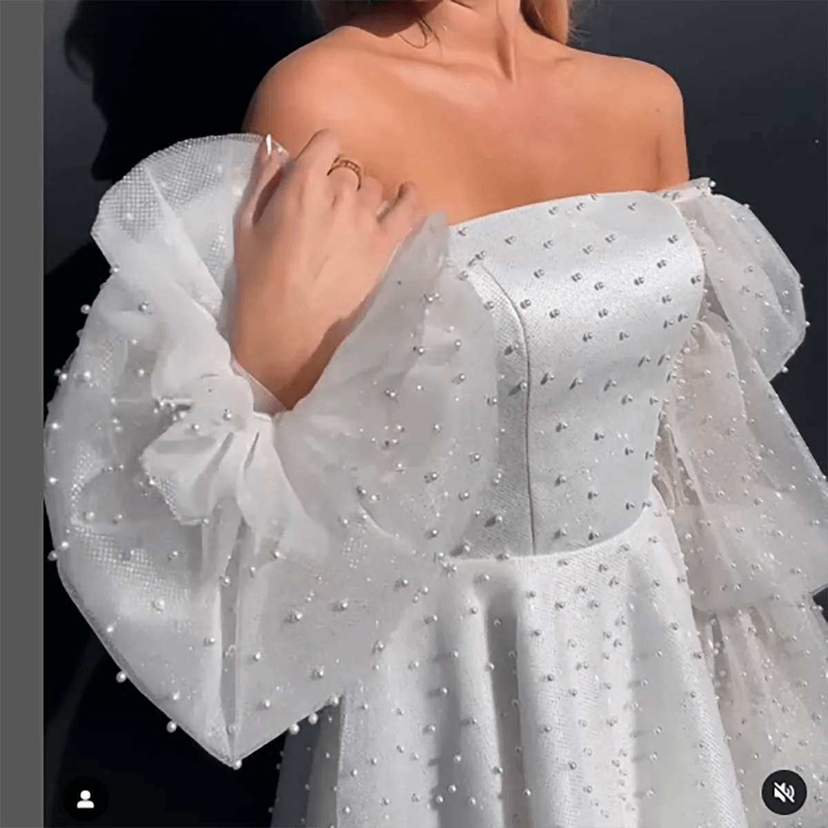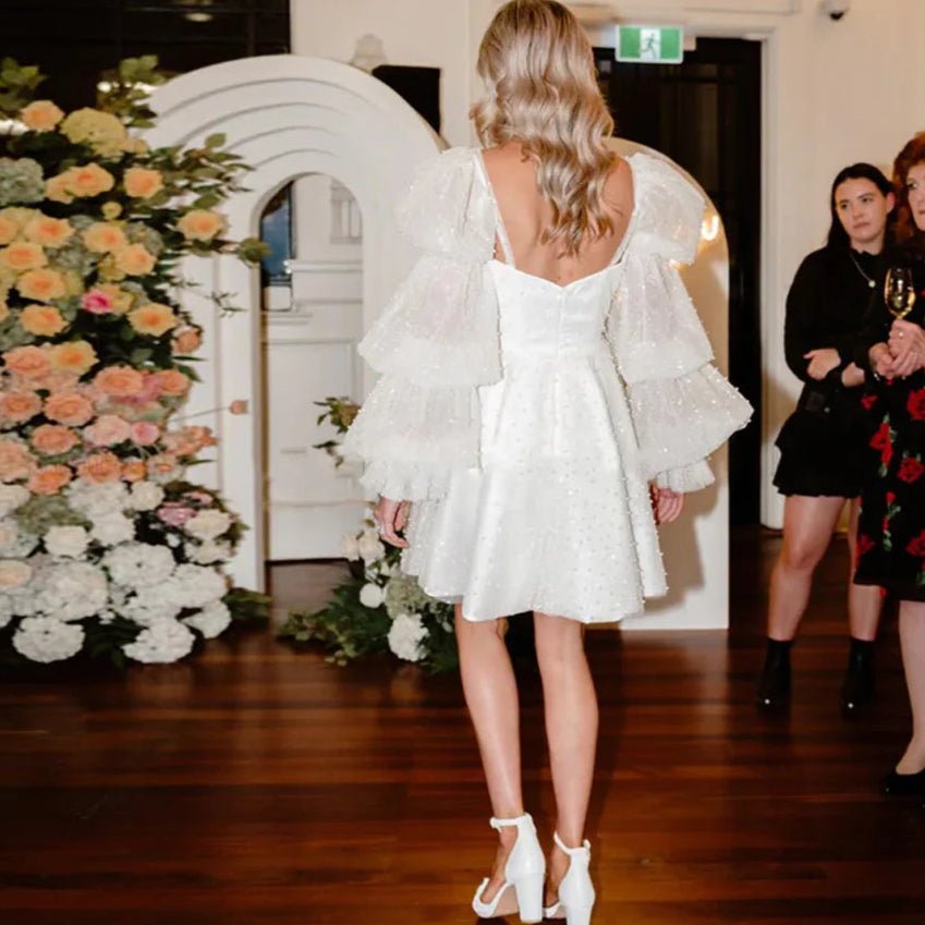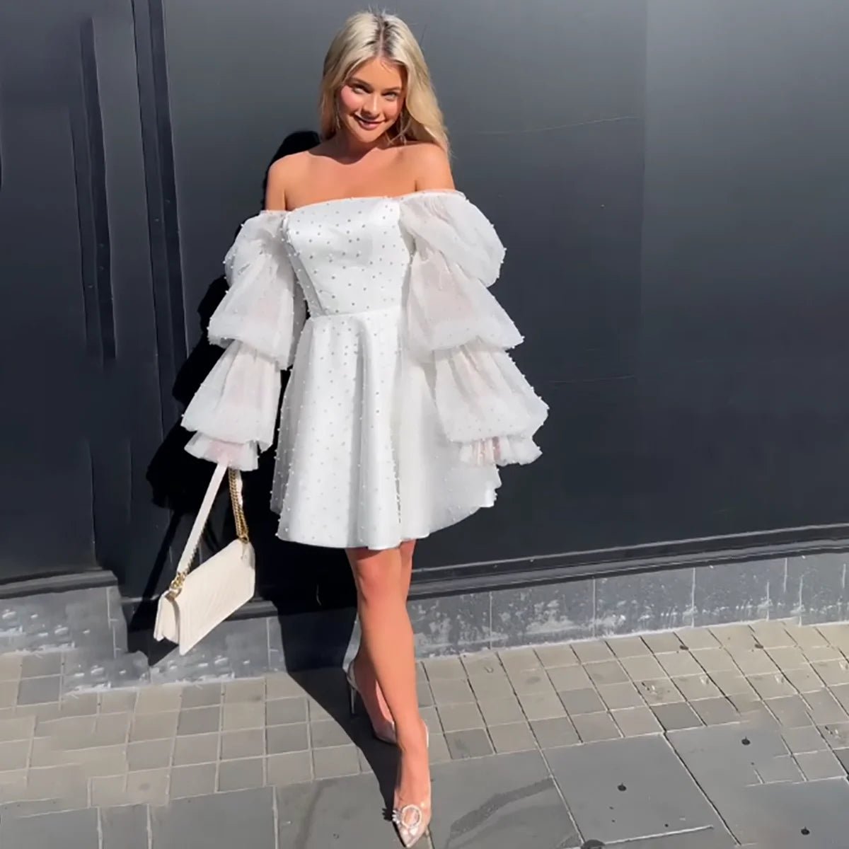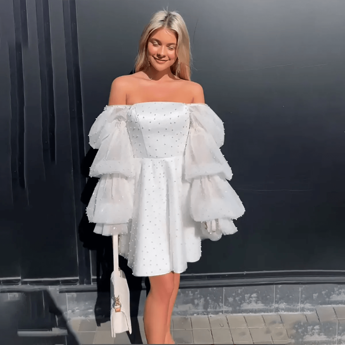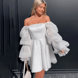 Off-Shoulder Bubble Sleeve Wedding Dress
