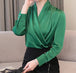 Chemisiers en satin drapé à col en V pour le bureau