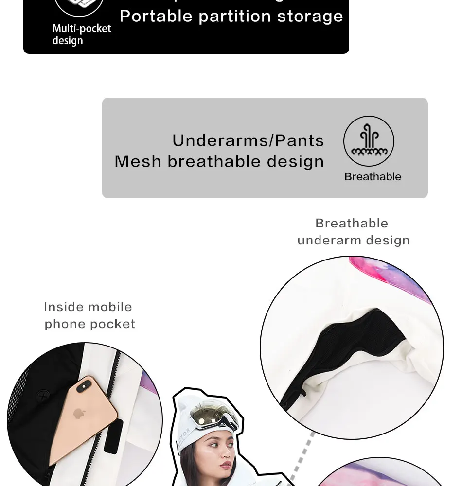 Manteau de ski extra épais pour homme et femme, veste et pantalon chauds pour l'hiver et l'extérieur