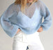 Pulls tricotés à manches lanternes transparentes en maille