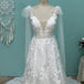 Robe de mariée minimaliste moderne avec un style bohème, décolleté en V, conception sans manches, traîne à balayage/pinceau, silhouette longue au sol, conception dos nu, tissu en dentelle, décoration en dentelle, soutien-gorge intégré, élément de mode dos nu, manches à bretelles spaghetti, options personnalisables disponibles, convient aux silhouettes trapèze avec une taille naturelle.