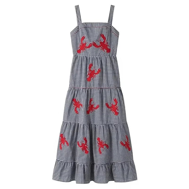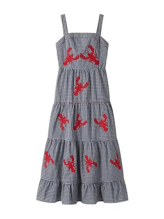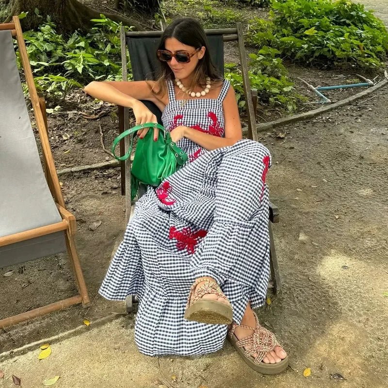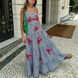 Robe longue décontractée à carreaux imprimés