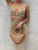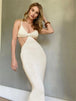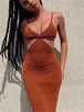Robe sexy dos nu à bretelles spaghetti pour femme, sans manches, ajourée, longueur cheville