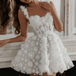 Elegant 3D Floral A-Line Mini Bridal Dress featuring a sweetheart neckline, sleeveless design, and lace fabric. This above-knee mini dress is adorned with 3D floral lace decorations and an illusion detail. Complete with a zipper back and built-in bra, this customizable A-line silhouette ensures a natural waistline and a perfect fit for your special day.