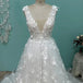 3D Flowers Lace Wedding Gown featuring 3D flower decorations, exquisite design, V-neck, sleeveless, court train, floor-length, lace fabric, and backless design. Built-in bra, tank-style sleeves, and natural waistline. Available in an exquisite style with luxury fashion elements and customizable options, perfect for an elegant A-line silhouette.