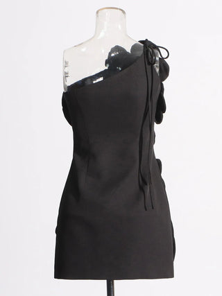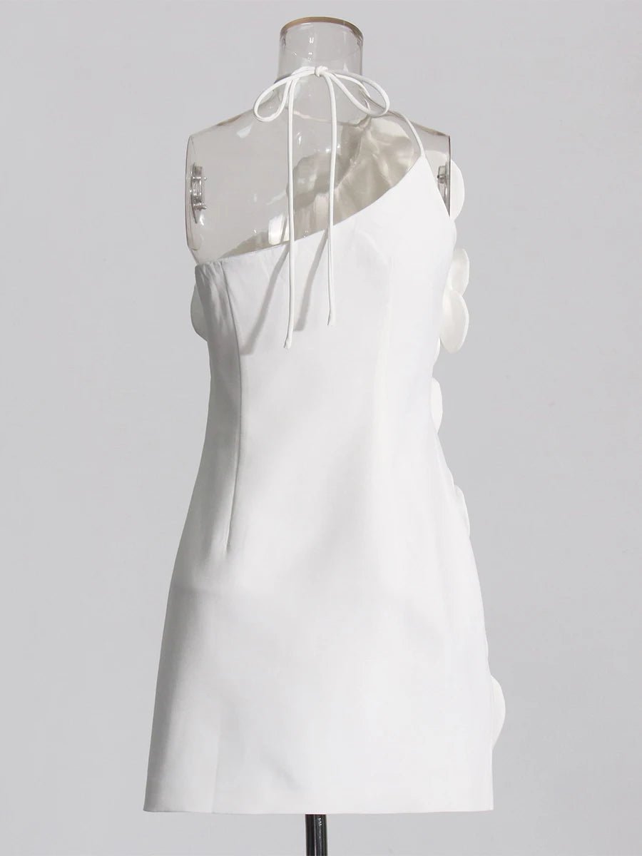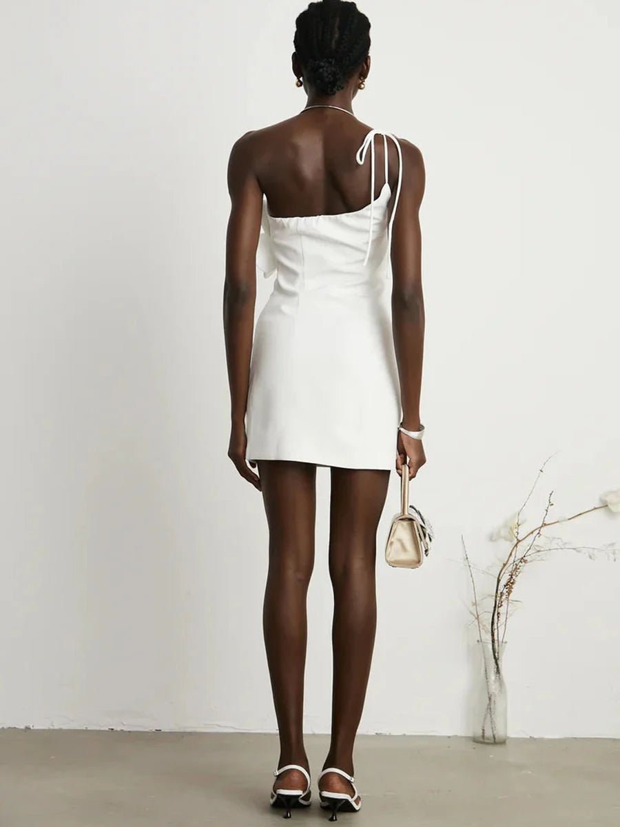 Design: A sleek mini dress featuring an asymmetrical neckline, delicate applique detailing, and a flattering high waist. The minimalist silhouette brings a modern, elegant touch perfect for warm seasons.