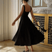 Design: A stylish ankle-length backless dress featuring an O-neckline, sleeveless design, and draped detailing. The A-line silhouette and empire waistline create an elegant and flattering look, perfect for casual spring and summer outings.
