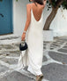 Design: Elegant ankle-length dress with a sleek V-neckline and backless design, crafted in a straight silhouette for a modern, refined look.